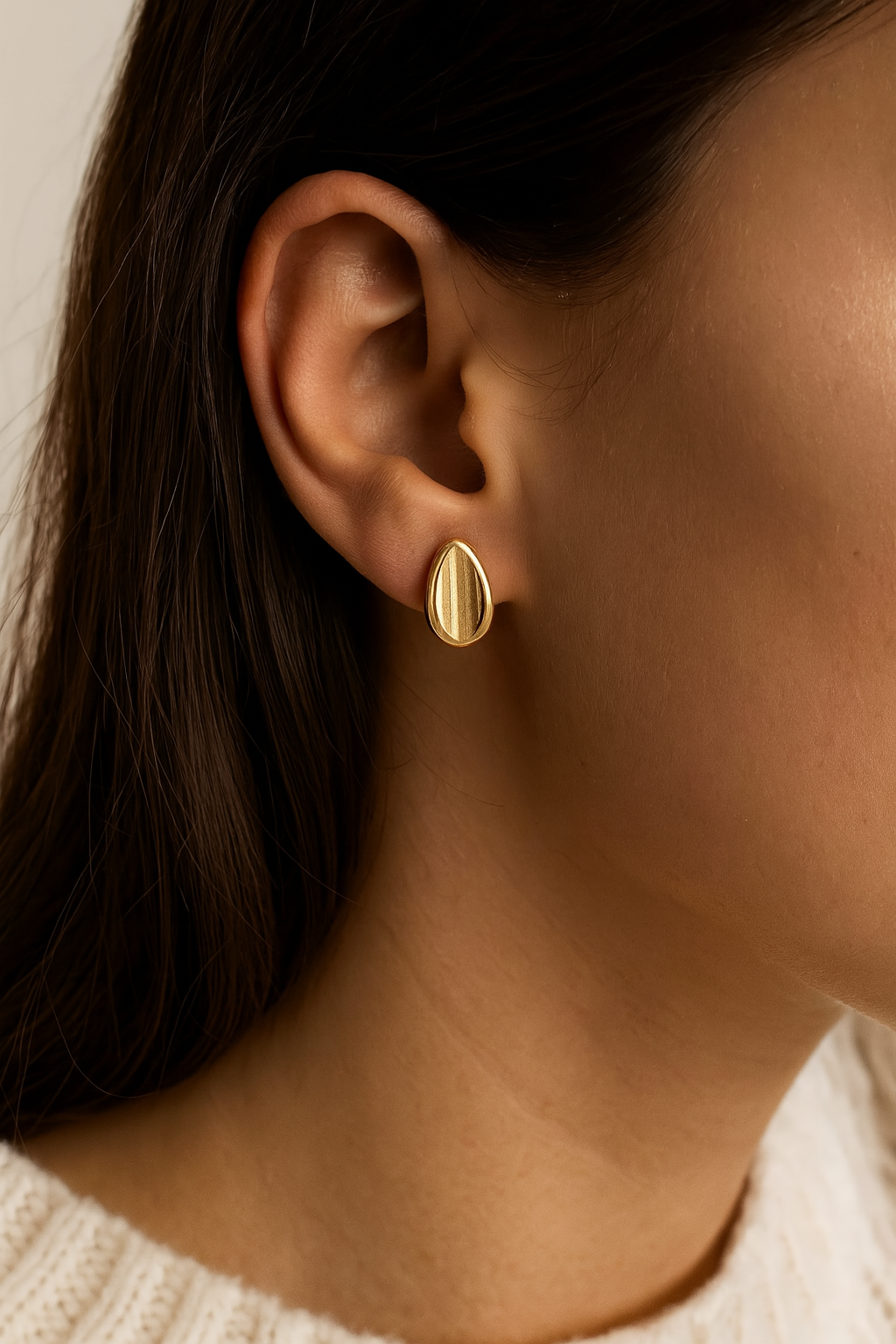 Add a touch of effortless elegance with these teardrop gold stud earrings. With their smooth, polished finish and minimalist silhouette, they’re perfect for elevating both everyday looks and special occasions.