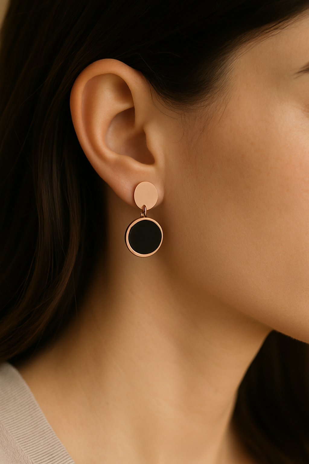 Make a subtle yet striking statement with the Midnight Muse earrings. Designed with sleek black enamel drops framed in a warm rose gold-tone finish, they’re the perfect blend of elegance and modern edge for any occasion.