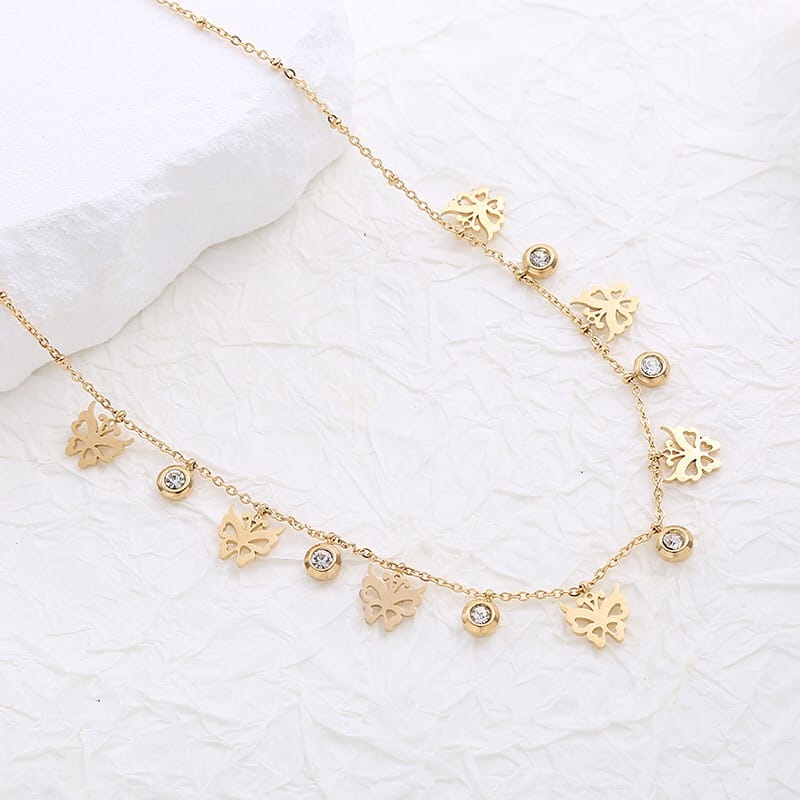 Gold Plated Butterfly Necklace – Features intricately cut butterfly charms for a delicate statement.
