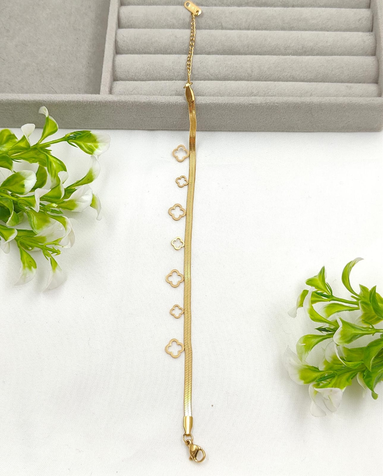 Add a symbol of charm and sophistication to your accessory collection with the Golden Clover Bracelet. Crafted with a sleek snake chain and adorned with alternating matte and polished four-leaf clover motifs, this bracelet beautifully blends tradition with modern elegance—perfect for daily wear or festive occasions.