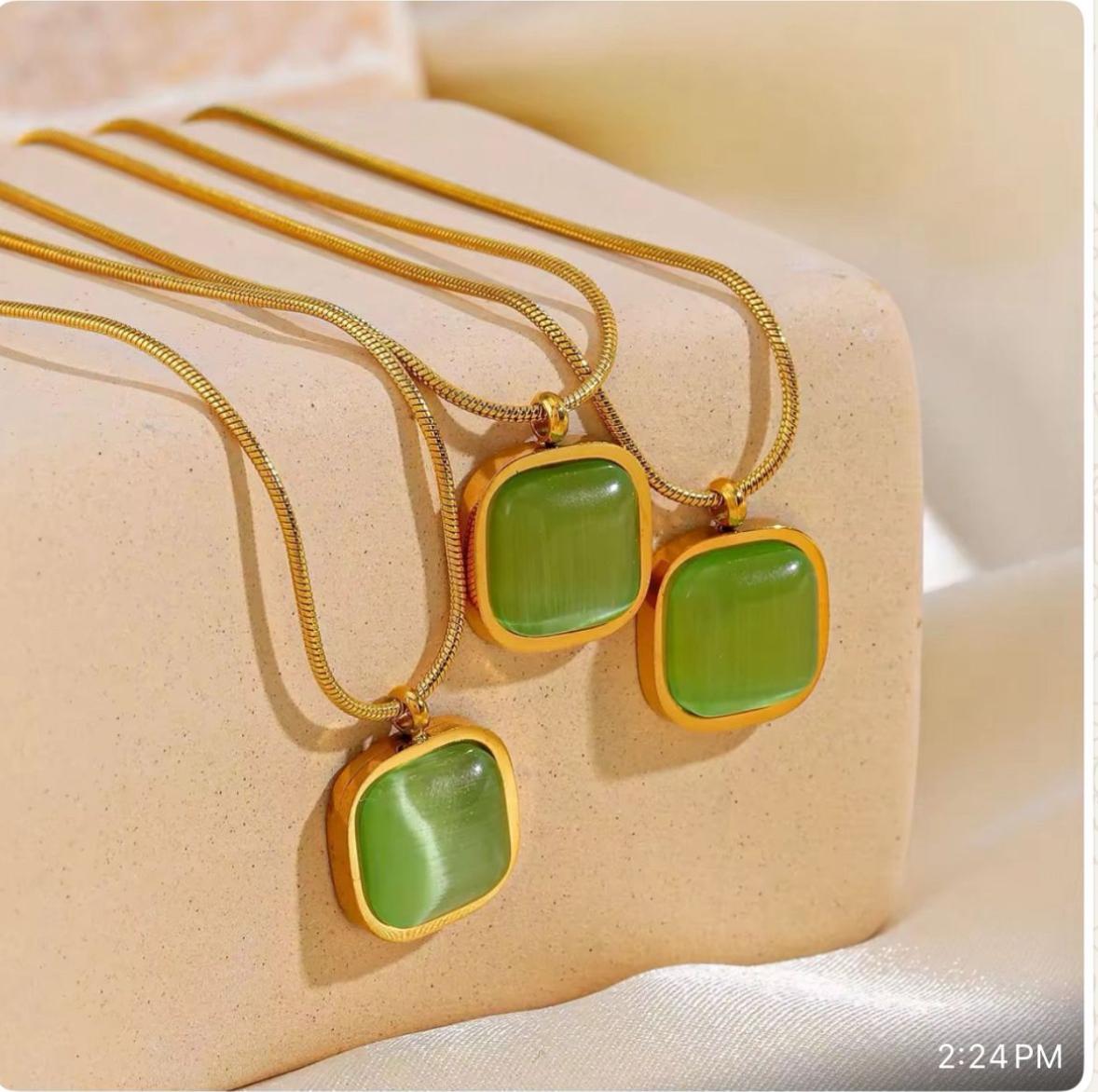 Premium Quality: 18K Gold-plated necklace with a striking green stone for a sophisticated look.
