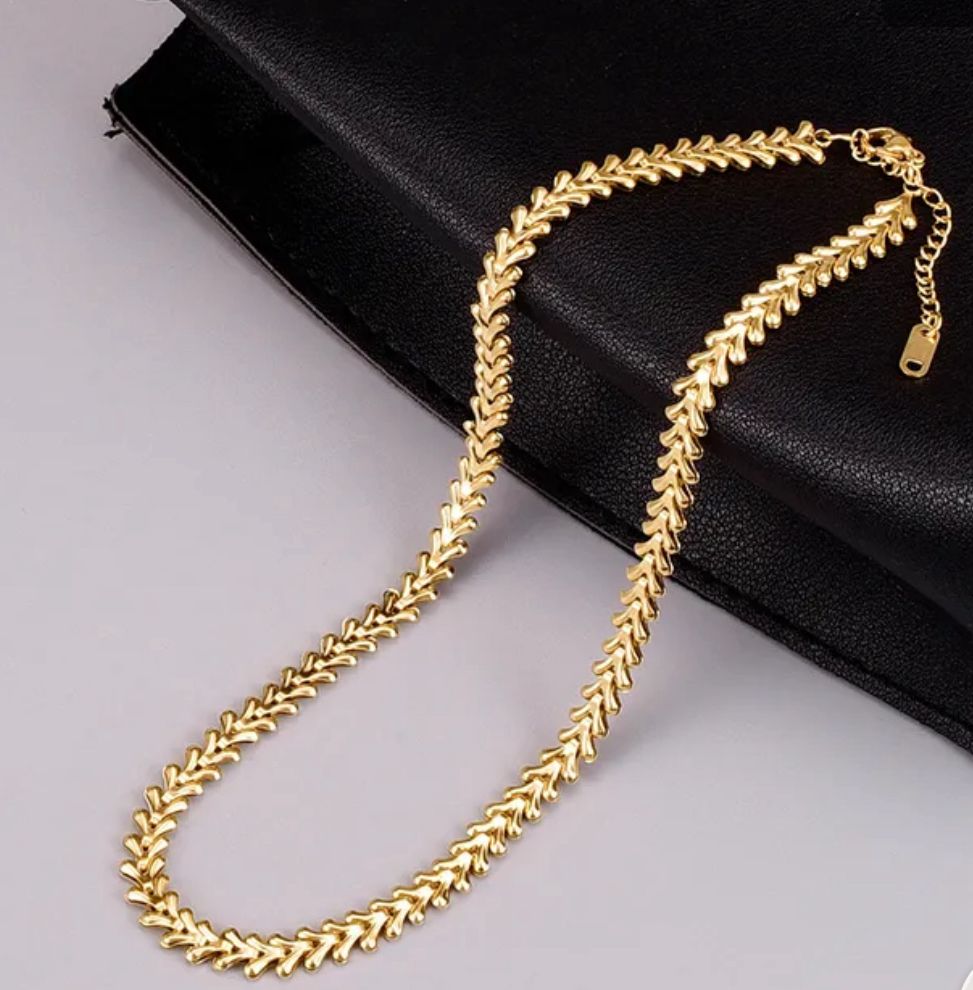 The Golden Ivy necklace is a timeless statement piece, inspired by nature’s elegance. Crafted with intricate leaf-like patterns, its bold gold finish makes it perfect for both grand occasions and everyday sophistication.