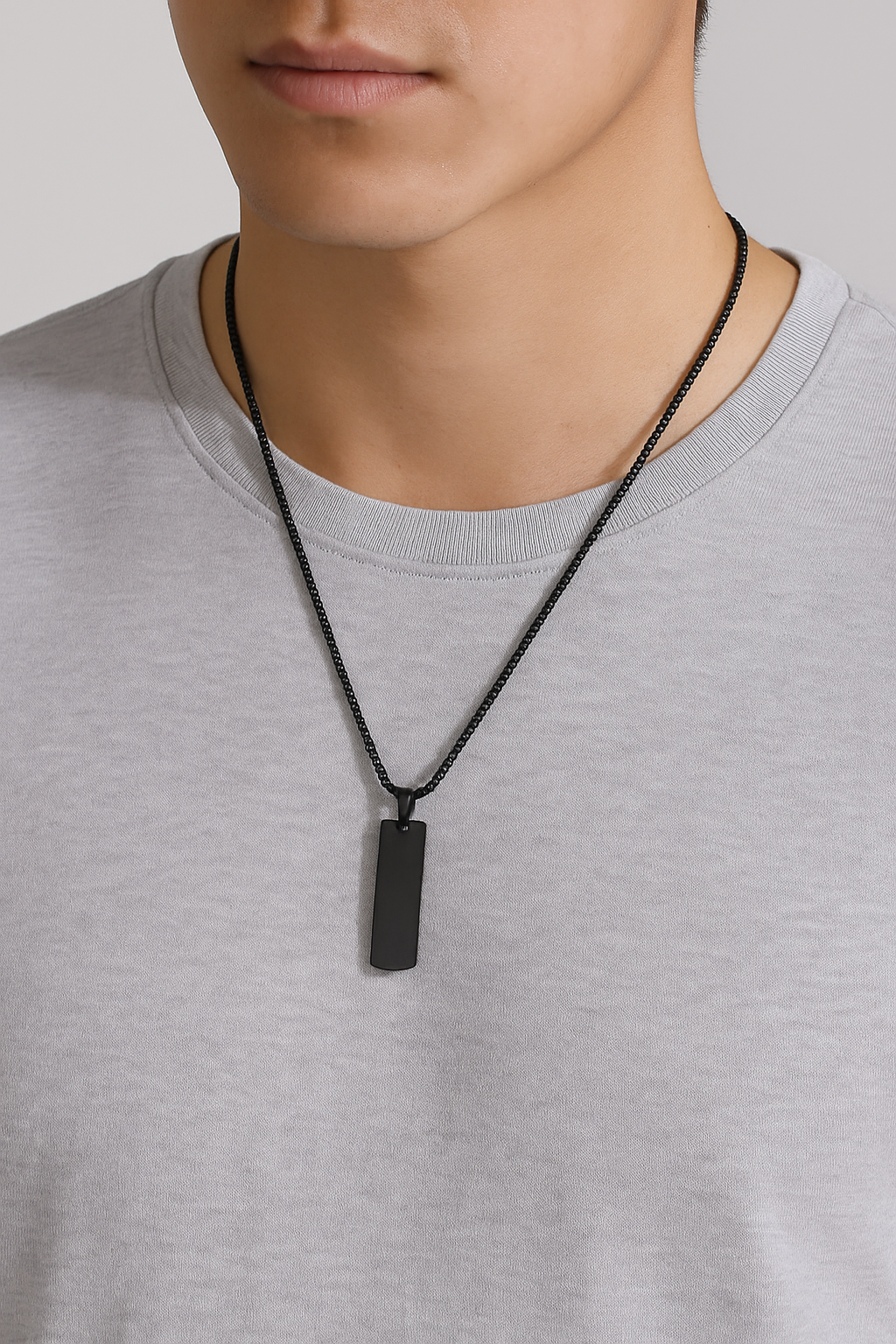 Premium Black Plated Pendant Necklace – crafted from stainless steel with a sleek black silver finish.