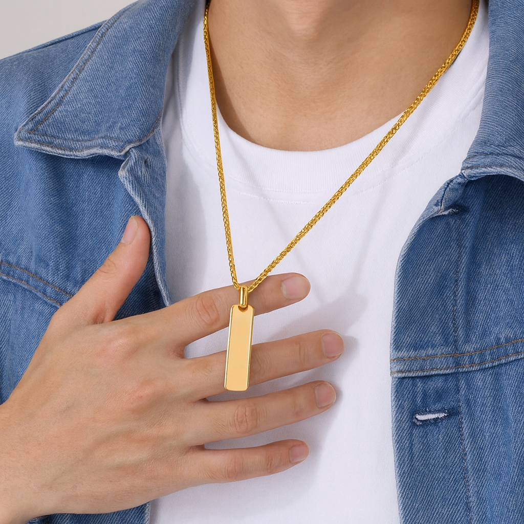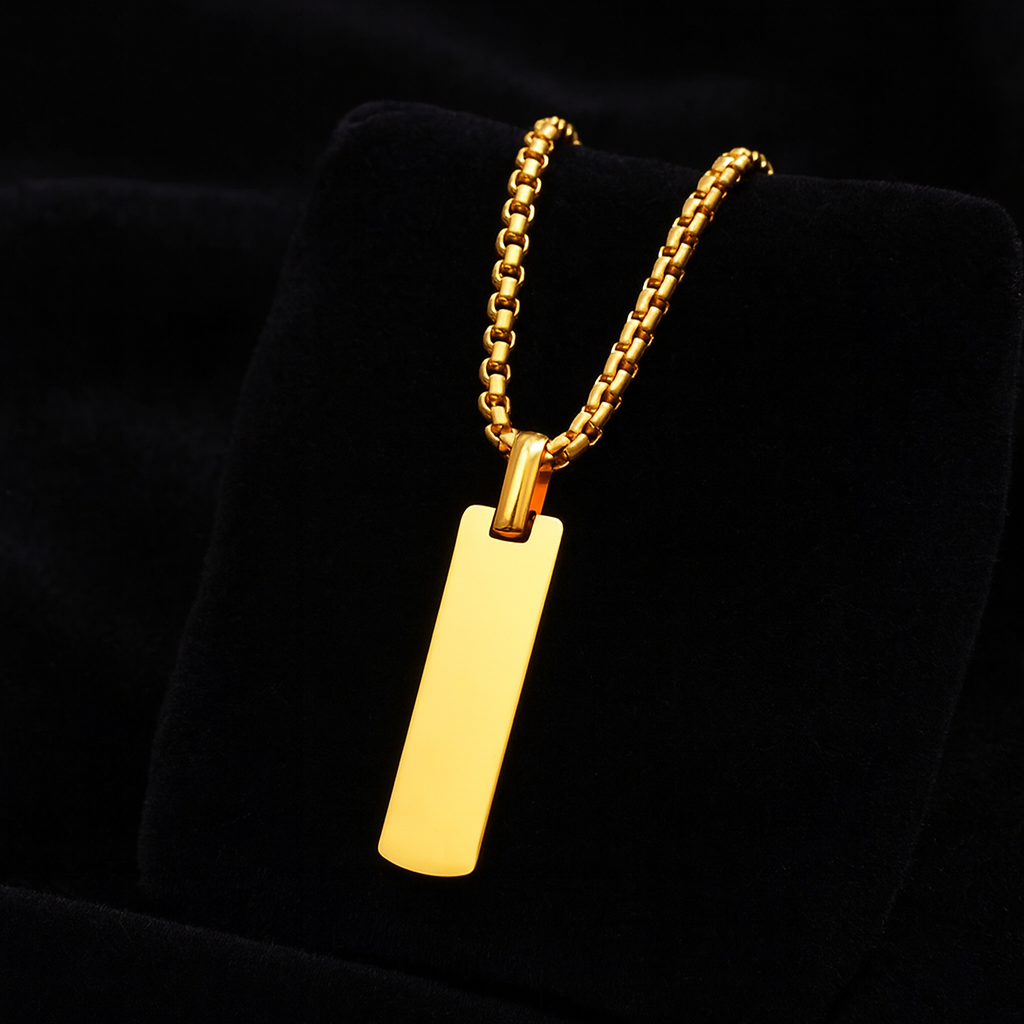 The Knock Bar Necklace in Gold is a bold yet minimal men’s accessory crafted from durable stainless steel with premium gold plating. Designed to be anti-tarnish, waterproof, and hypoallergenic, this sleek bar pendant symbolizes strength and sophistication — perfect for everyday wear or statement styling.