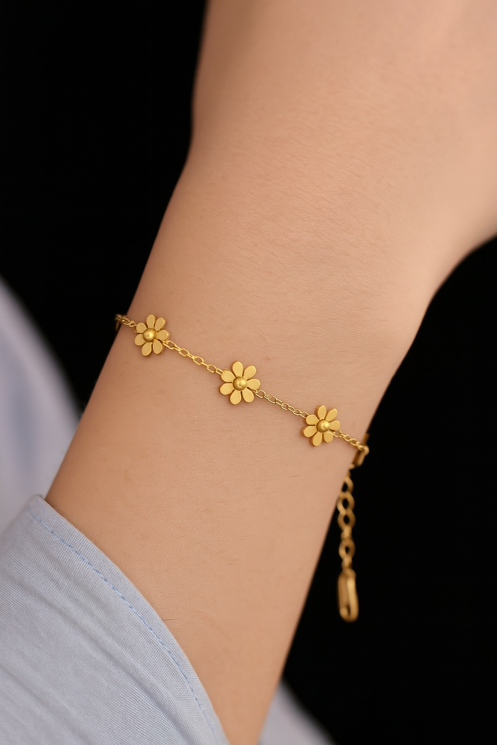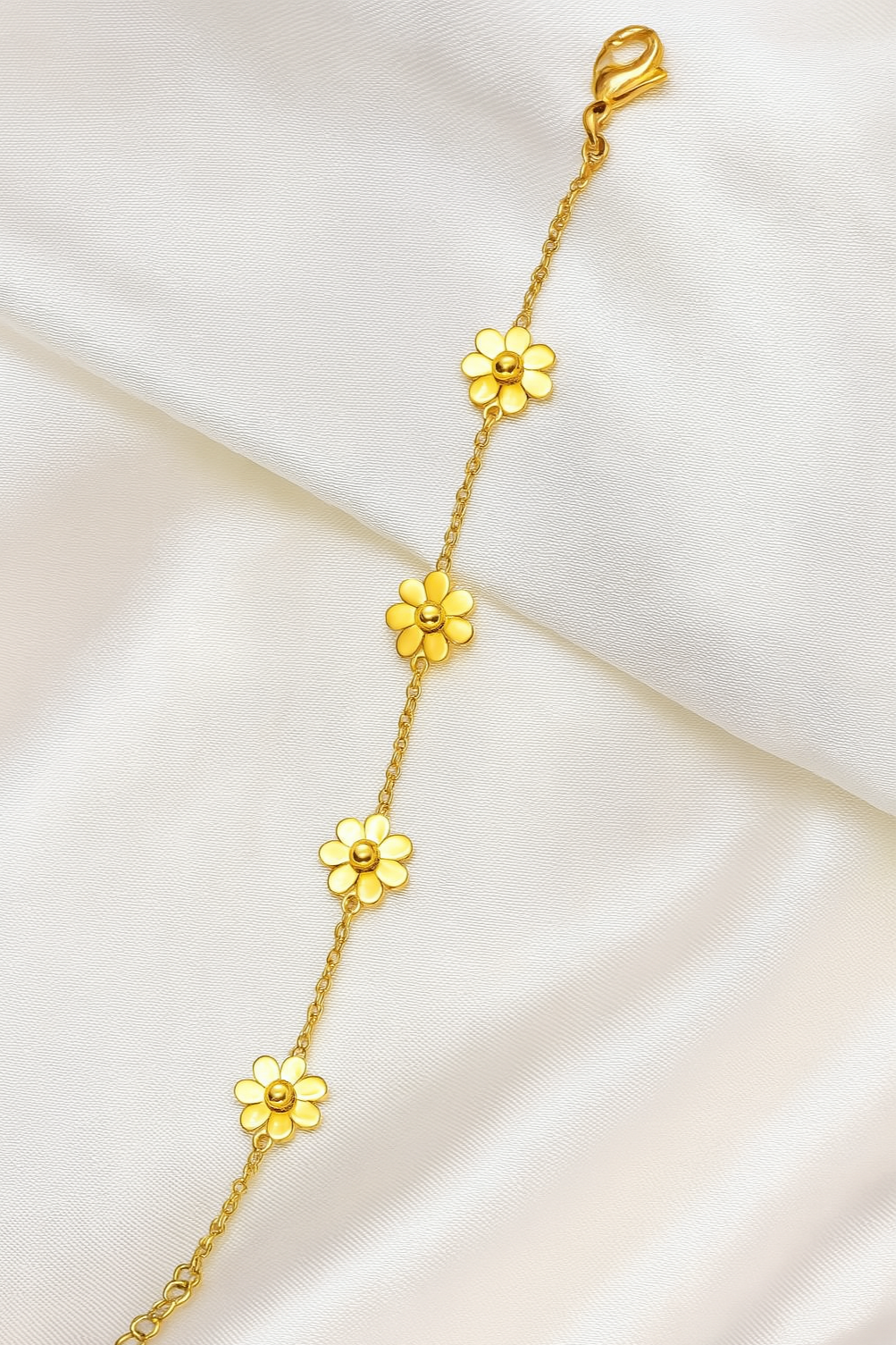 Gold daisy bracelet with delicate floral charms for a fresh, feminine vibe
