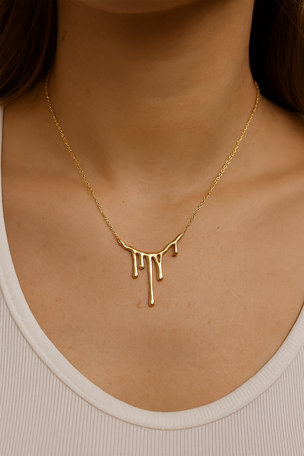 18K Gold Plated Drip Necklace – Trendy and edgy design inspired by liquid gold aesthetics.