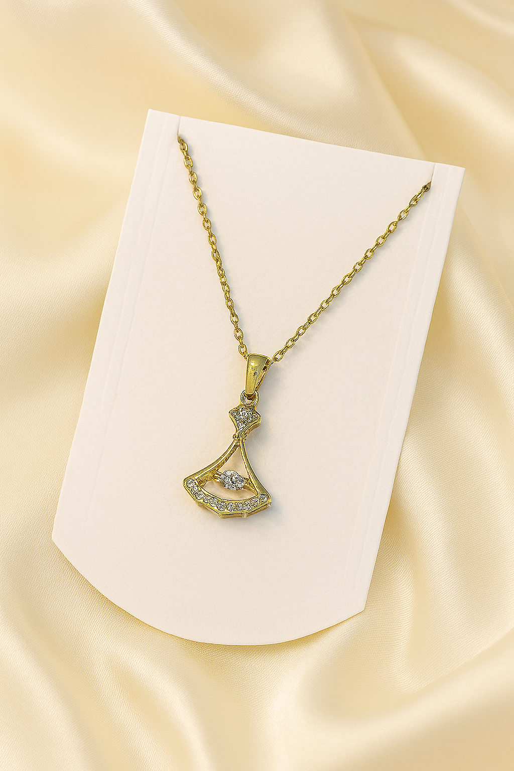 Gracefully designed like a little charm bell, Twinkle Belle is a gold-toned pendant necklace adorned with delicate CZ stones and a shimmering centerpiece. Light, elegant, and full of playful sparkle—it's the perfect dainty detail for any outfit!